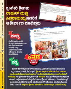 ಈ ಪೋಟೋಗಳನ್ನು ಕರ್ನಾಟಕ ಕಾಂಗ್ರೆಸ್ ತಮ್ಮ ಟ್ವಿಟರ್(X) ಖಾತೆಯಲ್ಲಿ 2018 ಮಾರ್ಚ್ನಲ್ಲೆ ಹಂಚಿಕೊಂಡಿದೆ ಮತ್ತು ಸಿದ್ದರಾಮಯ್ಯನವರು ಸಹ ತಮ್ಮ ಟ್ವಿಟರ್ ಖಾತೆಯಲ್ಲಿ ಹಂಚಿಕೊಂಡಿದ್ದಾರೆ. ರಾಹುಲ್ ಮತ್ತು ಸಿದ್ದರಾಮಯ್ಯ ಶೃಂಗೇರಿ ಶ್ರೀಗಳ ಆಶೀರ್ವಾದ ಪಡೆದಿದ್ದಾರೆ ಎಂದು ಅನೇಕ ಕನ್ನಡ ಮತ್ತು ಇಂಗ್ಲೀಷ್ ಮಾಧ್ಯಮಗಳು ವರದಿ ಮಾಡಿವೆ. ಆದರೆ ಕೆಲವು ಬಲಪಂಥೀಯ ಖಾತೆಗಳಿಂದ ಶೃಂಗೇರಿ ಶ್ರೀಗಳು ಆಶೀರ್ವಾದ ನಿರಾಕರಿಸಿದ್ದಾರೆ ಎಂದು ಸುಳ್ಳು ಹಬ್ಬಿಸುತ್ತಿದೆ. ಈ ಕುರಿತು ಬೂಮ್ ಲೈವ್, ಫ್ಯಾಕ್ಟ್ಲಿ ಸೇರಿದಂತೆ ಅನೇಕ ಮಾಧ್ಯಮಗಳು ಸಹ ಫ್ಯಾಕ್ಟ್ಚೆಕ್ ಪ್ರಕಟಿಸಿವೆ. ಆಗಾಗಿ ಶೃಂಗೇರಿ ಭಾರತಿ ತೀರ್ಥರು ರಾಹುಲ್ ಮತ್ತು ಸಿದ್ದರಾಮಯ್ಯನವರಿಗೆ ಆಶಿರ್ವಾದಿಸಲು ನಿರಾಕರಿಸಿದ್ದಾರೆ ಎಂಬುದು ಸುಳ್ಳು.