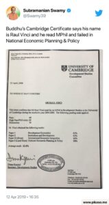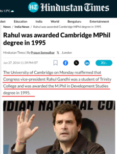 ಆದರೆ ಸುಬ್ರಮಣ್ಯನ್ ಸ್ವಾಮಿ ಯವರು ಹಂಚಿಕೊಂಡಿರುವ ಎಂಫಿಲ್ ಪ್ರಮಾಣ ಪತ್ರವು 2008ರದ್ದಾಗಿದ್ದು, ರಾಹುಲ್ ಗಾಂಧಿಯವರು ಕೇಂಬ್ರಿಡ್ಜ್ ವಿಶ್ವವಿದ್ಯಾಲಯದ ಟ್ರಿನಿಟಿ ಕಾಲೇಜಿನಲ್ಲಿ ಎಂಫಿಲ್ ಮುಗಿಸಿರುವುದು 1995ರಲ್ಲಿ. ಆದ್ದರಿಂದ ಸುಬ್ರಮಣ್ಯನ್ ಸ್ವಾಮಿ ಸಹ ಜನರನ್ನು ತಪ್ಪುದಾರಿಗೆ ಎಳೆಯಲು ಸುಳ್ಳು ಸುದ್ದಿಯನ್ನು ಹಂಚಿಕೊಂಡಿದ್ದರು.