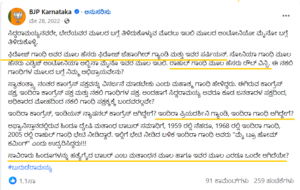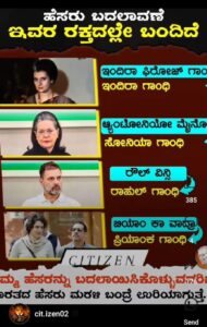 ಈಗ, “ಹೆಸರು ಬದಲಾಯಿಸಿಕೊಳ್ಳುವುದು ಕಾಂಗ್ರೆಸ್ನವರ ರಕ್ತದಲ್ಲಿಯೇ ಬಂದಿದೆ. ಇಂದಿರಾ ಗಾಂಧಿಯ ಮೂಲ ಹೆಸರು ಇಂದಿರಾ ಫಿರೋಜ್ ಗಾಂಧಿ, ಸೋನಿಯ ಗಾಂಧಿಯವರ ಹೆಸರು ಆಂಟ್ಯೋನಿಯೋ ಮೈನೋ, ರಾಹುಲ್ ಗಾಂಧಿಯ ಹೆಸರು ರೌಲ್ ವಿನ್ಸಿ, ಮತ್ತು ಪ್ರಿಯಂಕ ಗಾಂಧಿಯ ಮೂಲ ಹೆಸರು ಬಿಯಾಂ ಕಾ ವಾದ್ರಾ.” ಎಂದು ಎಂಬ ಸಂದೇಶವೊಂದು ಸಾಮಾಜಿಕ ಜಾಲತಾಣಗಳಲ್ಲಿ ಹರಿದಾಡುತ್ತಿದೆ. ಬಿಜೆಪಿ ಕರ್ನಾಟಕ ಸಹ ತನ್ನ ಅಧಿಕೃತ ಪುಟದಲ್ಲಿ ಈ ಸುಳ್ಳನ್ನು ಹಂಚಿಕೊಂಡಿದೆ.