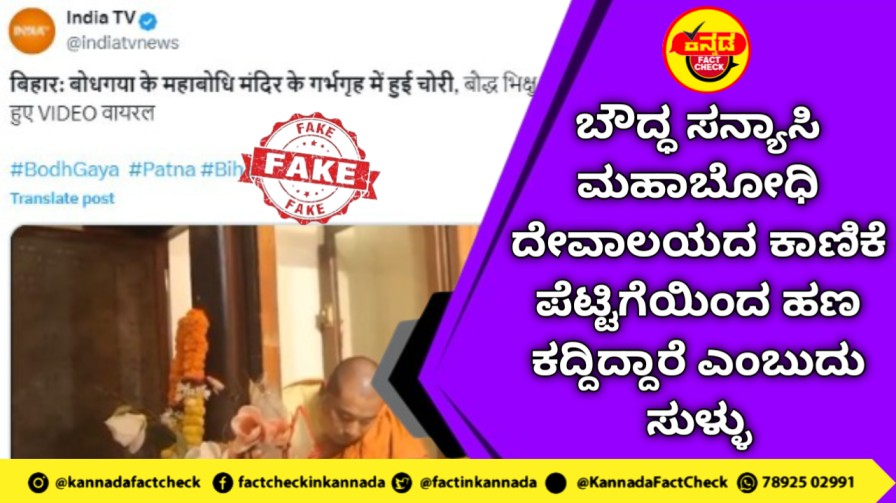 “ಈ ವಿಡಿಯೋ ನೋಡಿ ಬೌದ್ಧ ಸನ್ಯಾಸಿಯೊಬ್ಬ ಮಹಾಬೋಧಿ ದೇವಾಲಯದ ಕಾಣಿಕೆ ಪೆಟ್ಟಿಯಿಂದ ಹಣವನ್ನು ಕದಿಯುತ್ತಿದ್ದಾನೆ. ಕಾಣಿಕೆ ಡಬ್ಬಿಯಿಂದ ಹಣವನ್ನು ತೆಗೆದು ಎಣಿಸಿದ ಬಳಿಕ, ಗೌತಮ ಬುದ್ಧನ ಪ್ರತಿಮೆಯ ಕಾಲಿಗೆ ನಮಸ್ಕರಿಸುತ್ತಾನೆ. ಇಂತಹ ನಾಚಿಗೆಗೇಡಿನ ಸಂಗತಿಯ ಬಗ್ಗೆ ಯಾಕೆ ಕ್ರಮ ಆಗಿಲ್ಲ” ಎಂಬ ಬರಹದೊಂದಿಗೆ ವಿಡಿಯೋವೊಂದನ್ನು ವ್ಯಾಪಕವಾಗಿ ಹಂಚಿಕೊಳ್ಳಲಾಗುತ್ತಿದೆ. ಈ ವಿಡಿಯೋವನ್ನು ಸಾಕಷ್ಟು ಮಂದಿ ಹಂಚಿಕೊಂಡು ತಮ್ಮ ಆಕ್ರೋಶವನ್ನು ಕೂಡ ವ್ಯಕ್ತ ಪಡಿಸುತ್ತಿದ್ದಾರೆ.