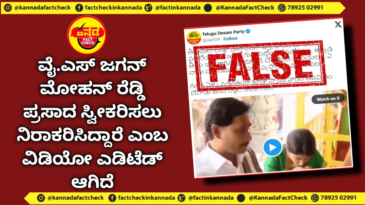 ಒಟ್ಟಾರೆಯಾಗಿ ಈ ಎಲ್ಲಾ ಅಂಶಗಳನ್ನು ಗಮನಿಸಿದಾಗ ಟಿಡಿಪಿ ಹಂಚಿಕೊಂಡಂತೆ ಆಂಧ್ರದ ಮಾಜಿ ಮುಖ್ಯಮಂತ್ರಿ ವೈಎಸ್ ಜಗನ್ ಮೋಹನ್ ರೆಡ್ಡಿ ತೀರ್ಥ ಸ್ವೀಕರಿಸಿ ಅದನ್ನು ಕುಡಿಯದೆ ಎಸೆದಿದ್ದಾರೆ ಎಂಬ ವಿಡಿಯೋ ಎಡಿಟೆಡ್ ಆಗಿದೆ. ಮೂಲ ವಿಡಿಯೋದಲ್ಲಿ ಜಗನ್ ಅವರು ತೀರ್ಥ ಸೇವನೆ ಮಾಡಿರುವುದು ಸ್ಪಷ್ಟವಾಗಿ ಕಂಡು ಬಂದಿದೆ. ಹಾಗಾಗಿ ವೈರಲ್ ವಿಡಿಯೋ ಸುಳ್ಳು ನಿರೂಪಣೆಯಿಂದ ಕೂಡಿದೆ.